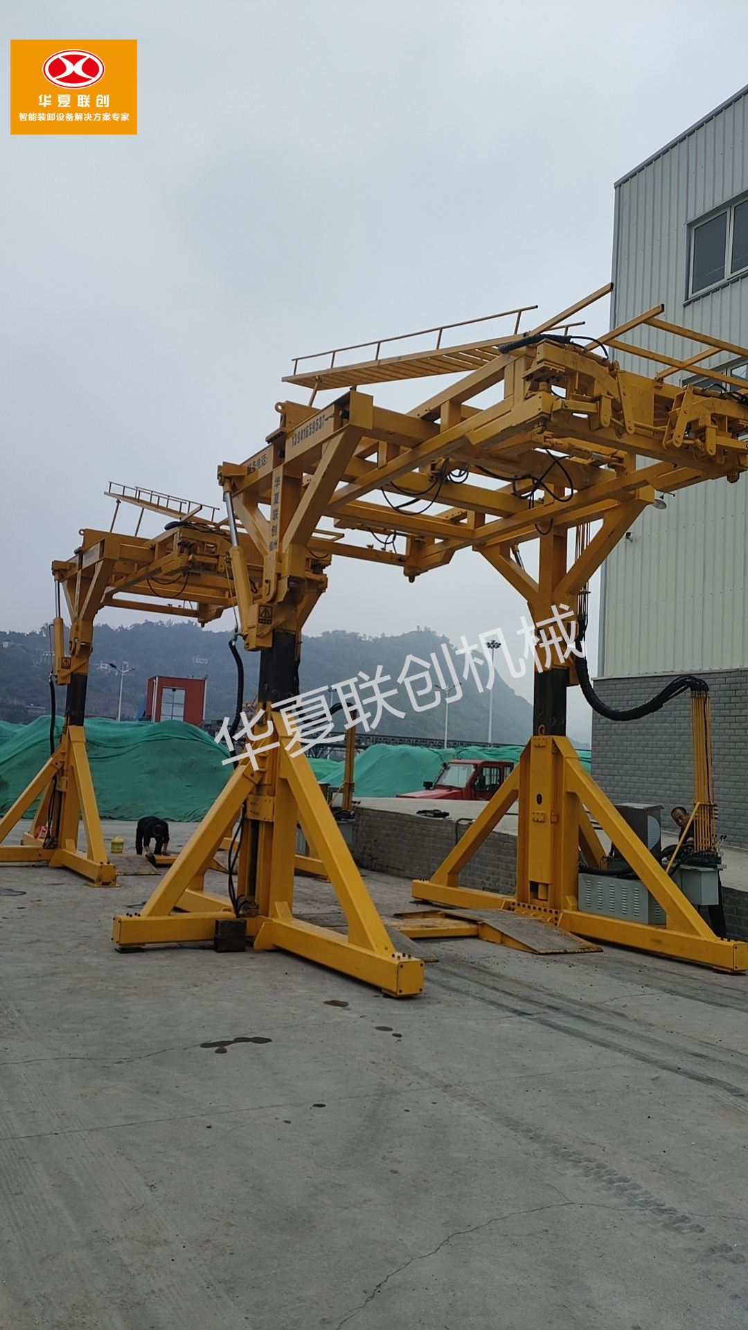 集裝箱翻轉機是我公司國內首創的集裝箱吊裝及翻轉的專用設備,該設備為可快速拆解的分體式結構,搬運方便;各部件采用優質的型鋼和鋼板及特種高強度鋼材組合焊接而成,部件間采用鋼結構高強度螺栓、法蘭連接,具有較強的承載能力和穩定性。本產品運轉穩定,安全可靠,可全天候工作。同時,可大量的降低人工成本,提高生產效率,真正的實現供需雙贏。