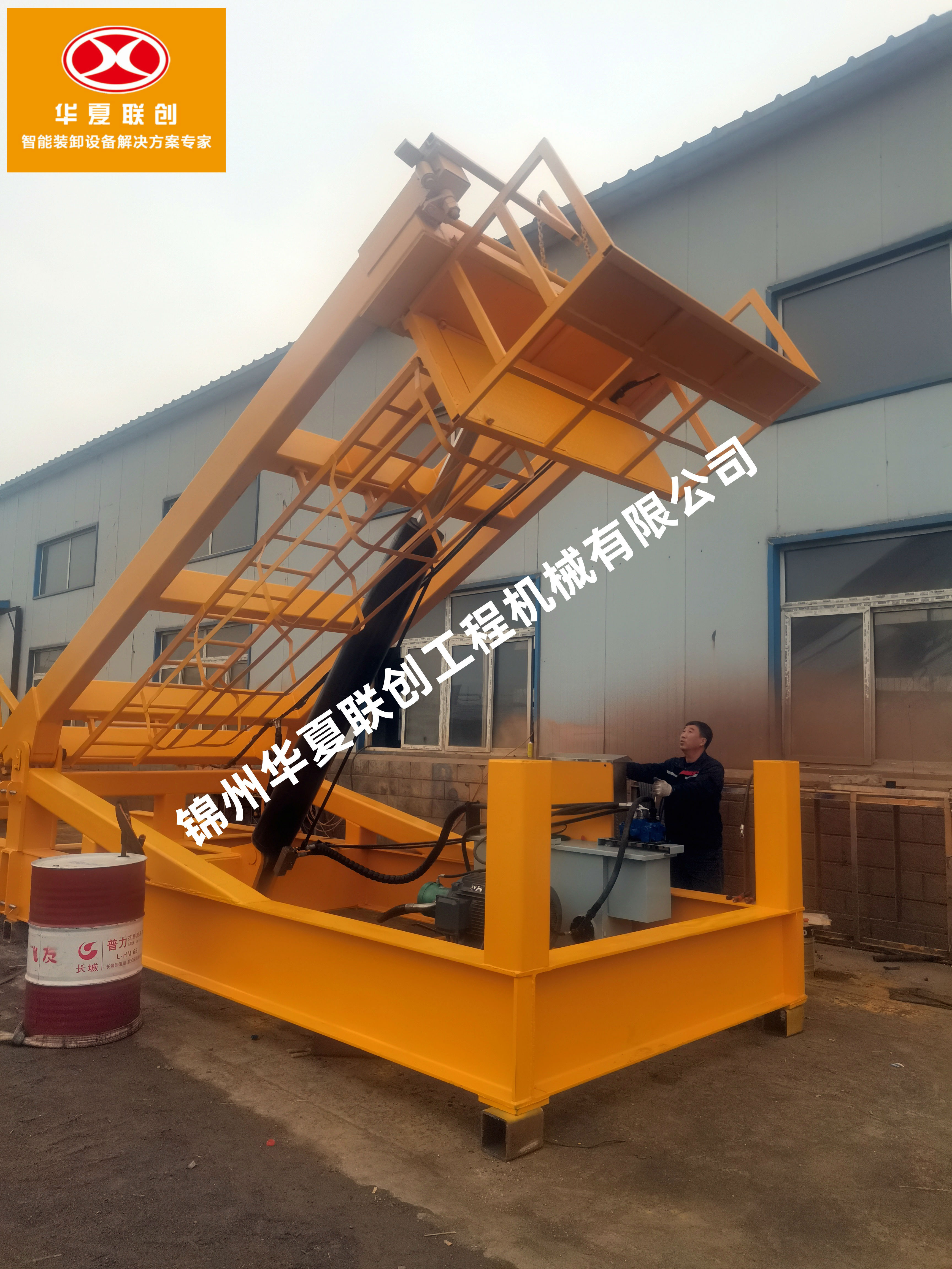 HXFT-40系列集裝箱翻轉(zhuǎn)平臺(tái)是我公司針對(duì)20英尺集裝箱散料裝箱研發(fā)的集裝箱翻轉(zhuǎn)作業(yè)的專(zhuān)用設(shè)備。各部件均由優(yōu)質(zhì)的型鋼和鋼板組合焊接而成,部件間采用鋼結(jié)構(gòu)高強(qiáng)度螺栓、法蘭連接,具有較好的承載能力和穩(wěn)定性。